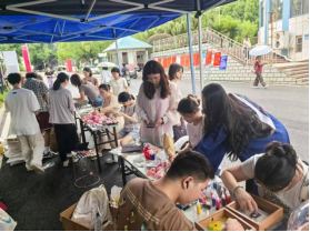 手工活动现场气氛热烈,毕业生用花朵和丝带精心装饰学士帽并拍照留念;在沙漏流沙画区域,同学们用彩沙制作层次丰富的流沙画封存青春瞬间;在漆扇书签区,参与者手绘漆扇书签,自用或赠师友,传递浓浓情谊。