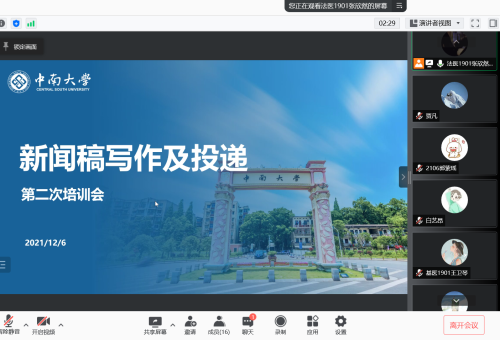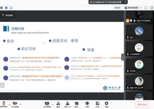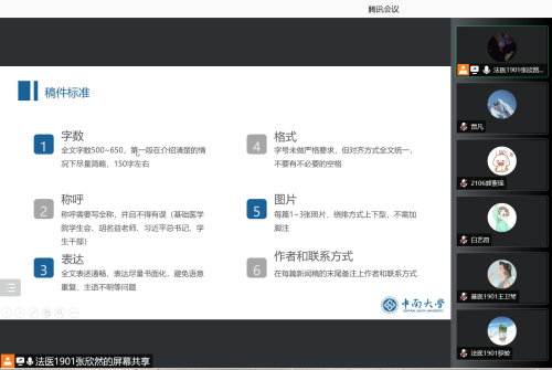 2021年12月8日晚21:10,william威廉英国官网基础医学院在腾讯会议成功开展“新闻稿写作及投递”第二次线上培训会。此次培训会由基础医学院学生会新闻宣传部部长,法医1901班张欣然同学主持,基础医学院各班组宣委员参加。