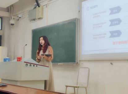 首先,张睿兮对竞选、述职类PPT的制作进行了讲解。她从PPT的不同场合的内容设置,文字、图片排版方式,评委们青睐的加分细节等部分入手,条理清晰地梳理了完整的制作流程,并且对制作过程中的善用模板、注重整合等要点进行进一步的讲解,并根据自身经验提出额外建议。她强调PPT可以通过突出重点,简化内容来理顺思路,提高工作效率,对于同学们现在和将来的学习生活都具有重要意义。