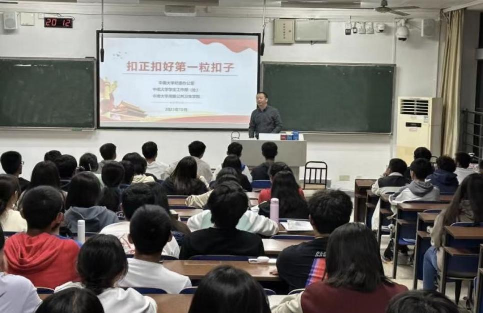 2023年10月25日,湘雅公共卫生学院2023级本科新生廉洁教育大会于新校区A座204室顺利召开,学院党委副书记王超为新生们上了一堂以“扣正扣好第一粒扣子”为主题的廉洁教育讲座。