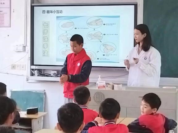 首先,宣讲志愿者刘语童同学以生动活泼的讲解风格向小朋友们介绍了水痘的相关知识,激发了小朋友们对秋冬季流行病知识的学习热情,为后续活动开展营造了良好的氛围;接着,李瑾同学带来了关于诺如病毒的知识小课堂,让同学们从根源上了解了病毒的产生与传播;最后,李佳忆同学为同学们科普了流行性感冒的有关内容,并详细介绍了预防流感的主要措施。