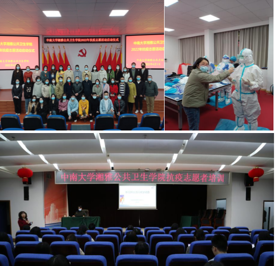 图2 湘雅公共卫生学院抗疫志愿活动启动仪式和志愿者防护技能培训