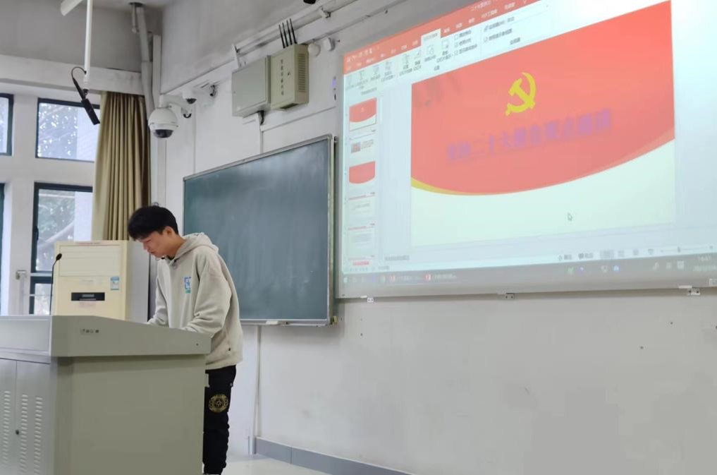 班会初始,为深入贯彻落实党的二十大精神,各班代表上台宣传二十大要点,普及二十大新思想。本项活动引导同学们将思想统一到党的二十大精神上来,把力量凝聚到党的二十大所确定的各项任务上来,让同学们有勇气有力量承担新时代对青年人的要求。