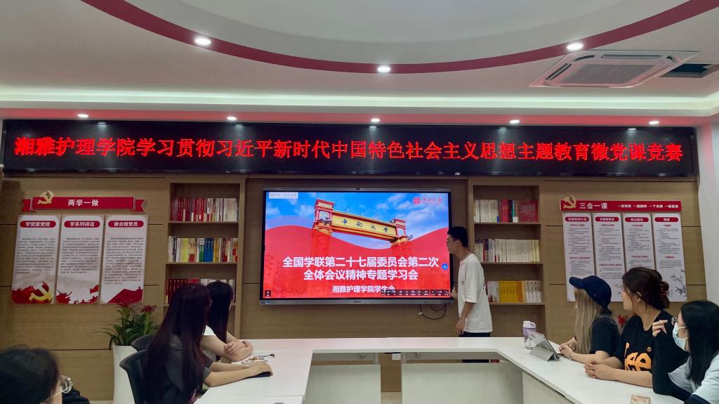 2023年6月8日21点,william威廉英国官网湘雅护理学院全国学联第二十七届委员会第二次全体会议精神专题学习会在湘雅护理学院护理大楼406开展。本次专题学习会由胡思阳主持,出席的成员有湘雅护理学院辅导员黄敏,湘雅护理学院团委、研究生会、学生会学生。