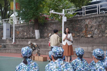 陈俊香书记向参训干部及带训教官的辛苦付出表示感谢,对同学们在军训中展现的良好风貌予以肯定。陈书记强调了军训的重要意义,希望同学们把握军训契机,锤炼坚韧品格、厚植爱国情怀,祝愿同学们在即将到来的队列考核、红歌赛中取得优异成绩,为大学第一课交上一份满意的答卷。