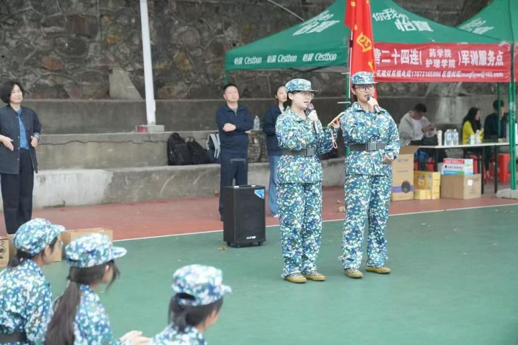 随后,军训新生献唱《我们俩》,以清甜歌声传递青春活力,既舒缓了训练的疲惫,也为现场注入了轻松愉悦的氛围,赢得了在场师生与教官的阵阵掌声。