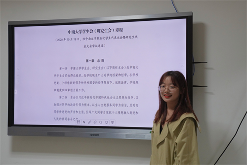 学生会主席彭颖倩传达了团中央、全国学联对学联学生会组织有关工作的要求,强调要深化学生组织工作改革、提高同学满意度、提升大局贡献度、提高社会认可度。她向大家介绍了湘雅护理学院团委学生会及研究生会工作人员管理制度和各项工作制度与准则,不仅加深了学生干部之间的交流,而且使学生干部们更加明确了认真倾听广大同学的诉求、积极畅通校园沟通、实心实意帮助同学解决困难的宗旨。