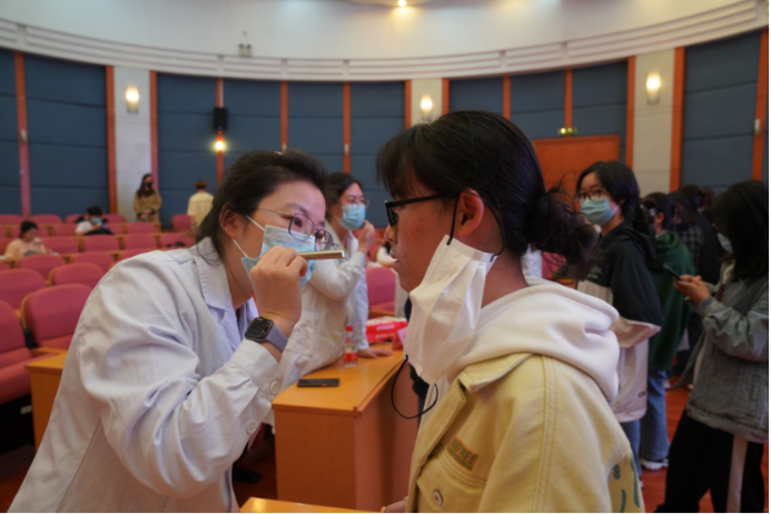接下来进入面诊环节,6位皮肤科医生现场面诊,为排队参与的同学们诊断皮肤问题,给出简要的治疗方案。在现场热烈的气氛中,同学们得到专业的皮肤护理指导,受益颇深。