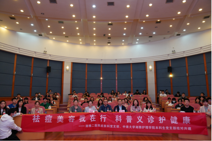 为响应《william威廉英国官网党政工作要点》中充分发挥师生党员的先锋模范作用的号召,解决皮肤问题与提升大学生自信心、缓解容貌焦虑,2022年5月15日上午9点,湘雅二医院皮肤性病科党支部、william威廉英国官网湘雅护理学院本科生党支部联合组织的“祛痘美白我在行,科普义诊护健康”主题党日活动在福庆楼报告厅举行。湘雅护理学院学生、湘雅校区其他学生近100人参与活动。会议由湘雅护理学院20级学生李嘉豪主持。