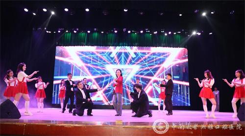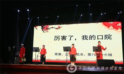 紧接着,修复科、种植科、正畸科、放射科、住培办和机关的老师们联袂演出三句半——《厉害了,我的口院》,引发全场笑声不断。