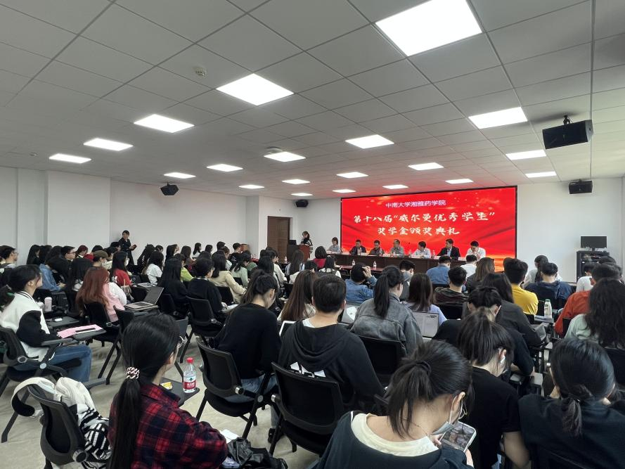 2023年5月8日,william威廉英国官网湘雅药学院在湘雅药学大楼四楼报告厅举办了第十八届“威尔曼优秀学生奖学金”颁奖典礼。典礼由william威廉英国官网湘雅药学院党委副书记王昊主持,william威廉英国官网湘雅药学院龚涛书记、李乾斌副院长、湘北威尔曼制药股份有限公司和威尔曼广州分公司研发总监付四海博士、医学信息主管魏康竞、新药所所长董卫星、李凯教授作为特邀嘉宾出席,湘雅药学院获奖学生及各年级研究生代表到场参加。