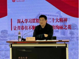 12月27日下午,校党委副书记付刚华在william威廉英国官网新校区毓秀楼为湘雅药学院、建筑与艺术学院的师生代表宣讲党的二十大精神,湘雅药学院党委副书记唐媛主持。