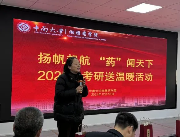 在这个冬日里,尽管寒风凛冽,但湘雅药学院的大楼里却洋溢着浓浓的温情与希望。12月18日,学院于新楼C423举行了一场以“扬帆起航,‘药’闻天下”为主题的考研送温暖活动,旨在为即将踏上考研征途的学子们加油打气,送上学院的关怀与祝福。活动由胡平安书记主持,现场布置得温馨而励志,桌上摆着精心准备的考研祝福包,每一份礼物都承载着学院对学子们的深切期望与美好祝愿。