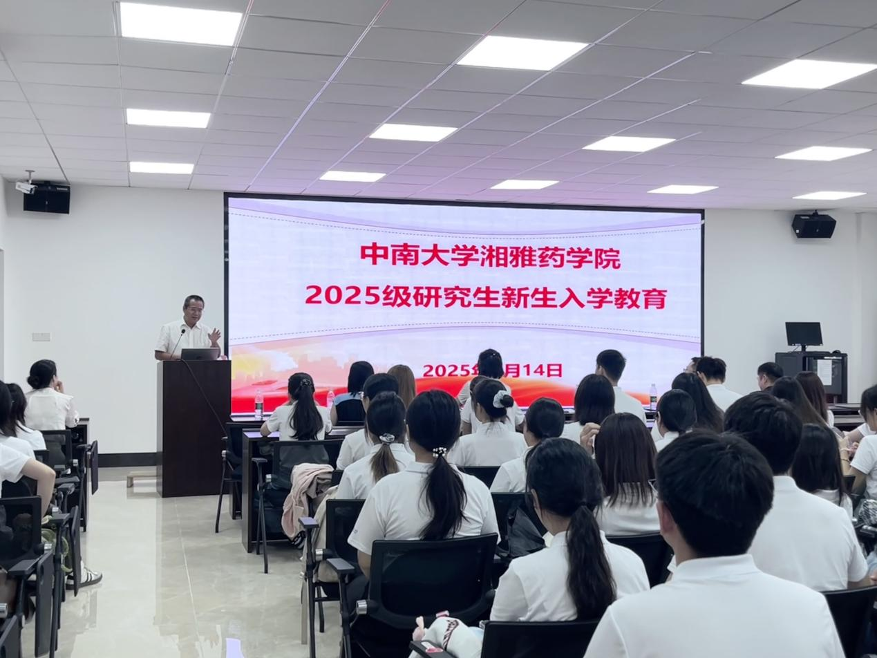 为助力2025级研究生新生尽快融入湘雅药学院,适应科研生活,2025年9月14日,湘雅药学院在杏林校区药学楼隆重举行新生入学教育大会。会议由学院学工办主任桂玲智老师主持,学院2025级全体硕士、博士研究生参加。