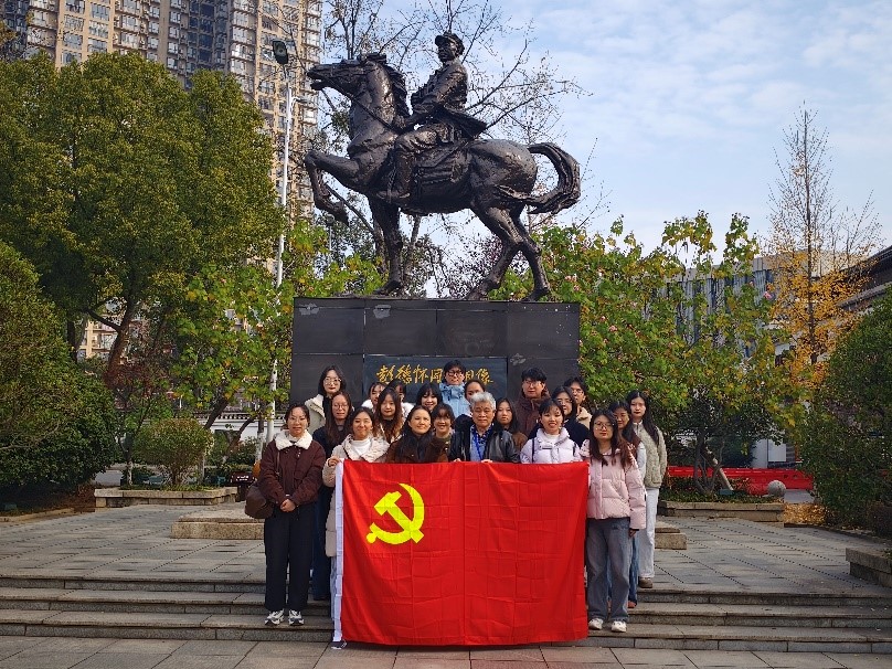 上午,师生们来到平江起义纪念馆。在讲解员的引导下,大家认真观看历史陈列,聆听革命故事,深刻感悟平江起义在中国革命历程中的重要意义与精神内涵。随后,团队前往天岳书院,在彭德怀铜像广场前整齐列队,肃立致敬,进一步强化了“坚定的共产主义理想信念”和“全心全意为人民服务”的宗旨意识,在庄重氛围中接受了一次深刻的思想淬炼。