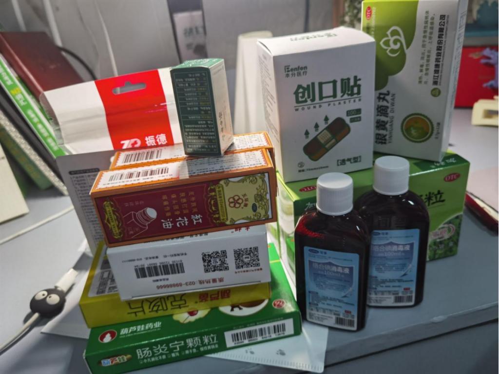 此外,我们还向关山小学捐赠了日常所需药品。关山小学原先药品十分匮乏,只有少量棉签和创口贴等,在湘雅药学院的帮助下,酒精、绷带、创口贴、碘伏、万花油、退烧药、感冒药、防中暑药等多种类药品充盈了他们的药箱。