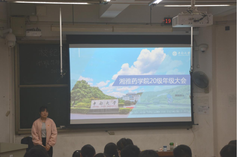 2022年5月3日,湘雅药学院于湘雅新校区福庆楼T110教室召开20级本科生年级大会。本次大会由辅导员唐春花老师主持,全体20级学生到场参会。晚上七点三十,会议正式开始。首先由辅导员唐春花老师介绍本次大会的主要内容及开展目的。会议主体由以下三个部分组成。
