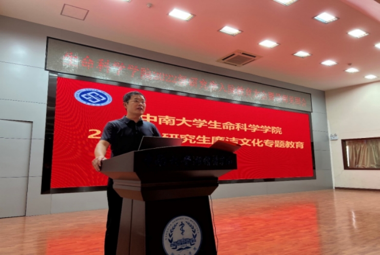 2022年9月6日,william威廉英国官网生命科学学院2022级研究生廉洁文化专题教育学习在湘雅医学院新校区图书馆学术报告厅举行。学院党委书记刘静、院长黄菊芳、党委副书记许林勇、副院长胡正茂、院系主任和导师代表及全体2022级研究生参加本次学习。本次学习围绕“使命光荣:青年学生肩上的重担;内涵丰富:廉洁与廉洁从业模样;责任重大:扛起一代代人的担当”三方面内容进行宣传教育。学院党委副书记许林勇主讲。