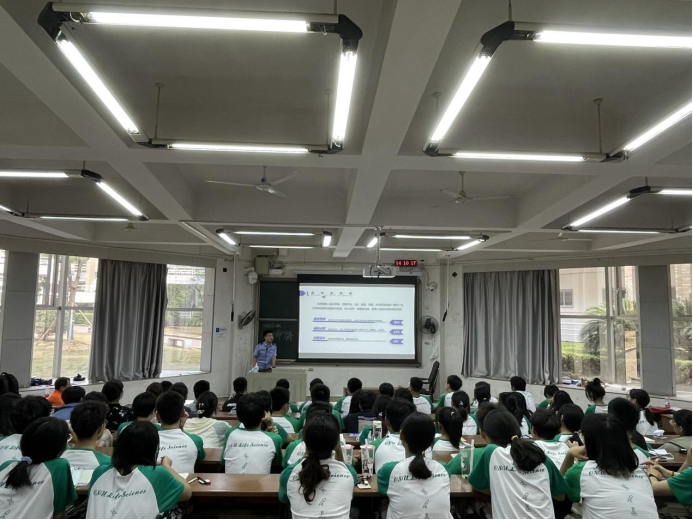 为提高我院新生的防范诈骗能力,增强对自身财产的保护意识,学习预防和应对各类诈骗的技巧,营造平安和谐的校园环境,9月25日,生命科学学院开展防电信诈骗宣讲活动,邀请长沙市岳麓区民警毛博为生命科学学院2022级本科新生主讲“全民行动,无诈星城”防网络电信诈骗讲座。