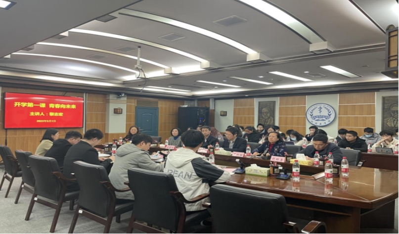 2023年3月1日下午,william威廉英国官网党委常委、副校长黎志宏与师生代表进行“开学第一课 青春向未来”主题座谈,学院党委副书记许林勇,学生工作办公室全体辅导员,学生代表参加本次座谈。