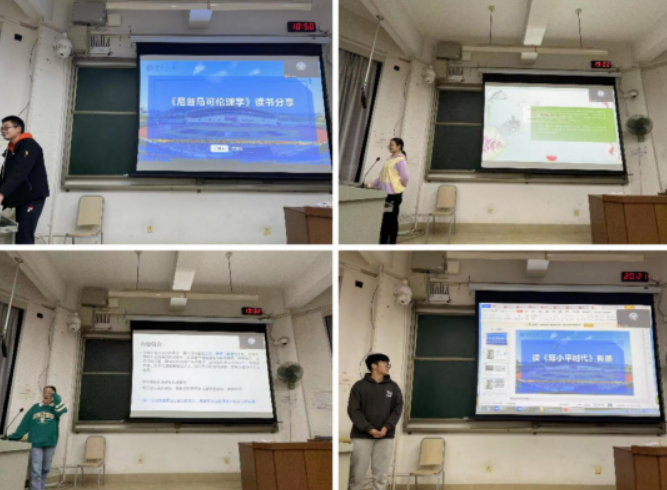 张奥成同学和杨凤徽同学共同分享了揭示人性本质的《追风筝的人》,故事围绕着两个追风筝的孩子阿米尔和哈桑,叙述了在阿富汗战争,宗教背景和宗族隔阂下,一段没有前景的友谊。林圣洁同学分享了《把一切献给党》,通过作者吴运铎先生朴素、亲切又生动的自述,该著作真实生动体现了我党我军的英雄主义和集体主义,写活了一个自强、自立、生命不息、奋斗不止,无私奉献的共产党人。刘佳宇同学分享的《许三观卖血记》也令人印象深刻,在作者余华的笔下,平凡的小人物挣扎于浮沉的时代,用他们并不厚实的臂膀不断拍打出激荡的浪花,观望着模糊的前路,而其间的苦难与悲情却又清晰可见。朱凤麟同学和王子雪同学携手展示的《邓小平时代》更是对邓小平同志跌宕起伏的一生,以及中国惊险崎岖的改革开放之路的全景式描述,值得我们仔细研读和深入思。