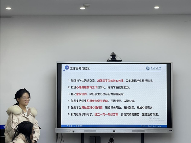 督导活动的最后,校心理健康教育中心谭林湘老师、马晓虹老师、熊燕老师、尚文老师分别对双相情感障碍学生的表现、形成原因和治疗的方法,如何与重关学生的家长更好的进行家校协同、如何提高确诊精神疾病学生对药物的依从性等方面进行讨论,对个案的帮扶工作进行了总结。