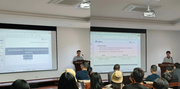 谭洁琼副教授以“溶酶体功能与帕金森病”为题作了汇报。汇报以溶酶体功能突变与帕金森病的关系为切入点,展示了其研究的思路与成果,并就相关研究的实验设计和结果分析与现场的师生进行了全面深入探讨。在场师生纷纷表示受益良多。