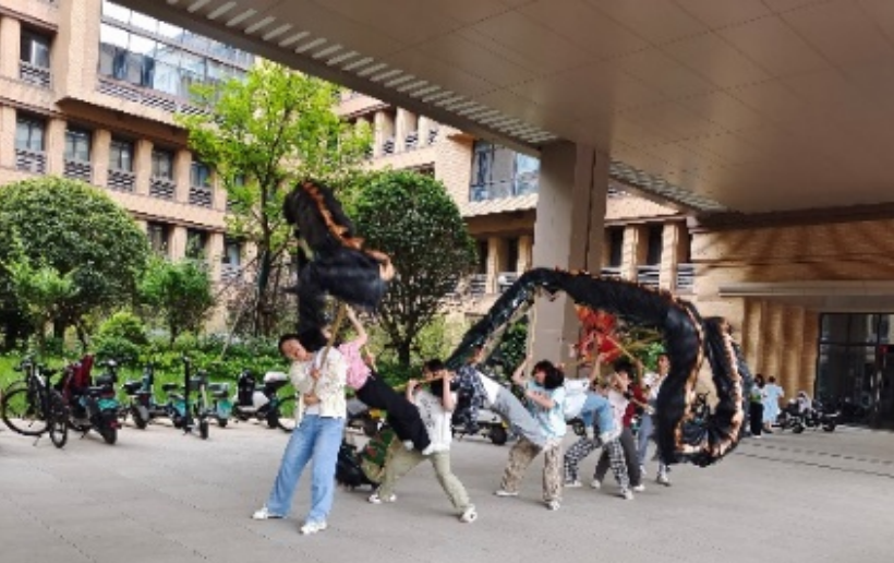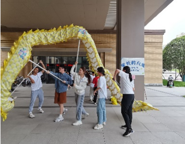 舞龙表演环节中,学生们享受了一场视觉与情感的盛宴。表演不仅展示了舞龙艺术的博大精深,还让在场的每一位观众感受到了舞龙所蕴含的深远文化和民族精神。随着鼓声的有力节奏,龙身在舞者们的操控下腾挪跌宕,每一次的舞动都是对中华民族传统文化的崇高敬意,每一次的飞跃都映射出青春的无限活力与激情。此外,活动还设置了丰富的奖品,包括龙形拍拍灯、夏日小风扇等精美礼品,以表彰在各项环节中表现出色的学生们。