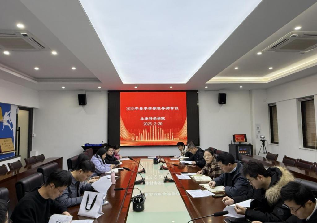 为深入学习贯彻习近平新时代中国特色社会主义思想,大力弘扬教育家精神,充分发挥班导师立德树人的重要作用,2025年2月20日上午,生命科学学院召开2024-2025学年春季学期本科生班导师会议。院党委副书记李善妮、本科生各班级班导师、学工办主任李跃辉、辅导员陈梅明、谢彬参加会议。会议由李善妮副书记主持。