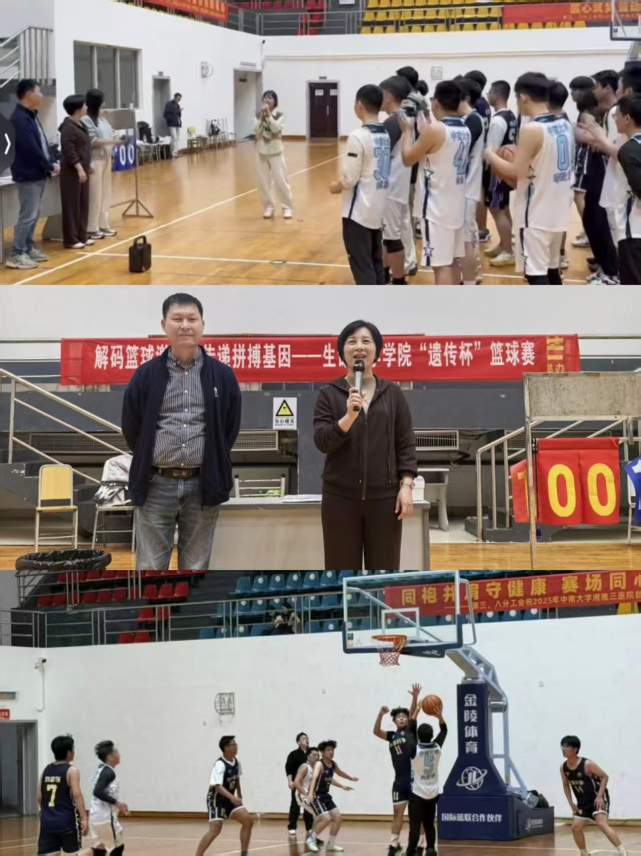 生命科学学院党委书记刘静、学工办主任李跃辉、谢彬老师、各参赛队员及裁判共同出席了本次“遗传杯”篮球联赛开幕式。开幕式伊始,生科T2401班张珂瑜同学以一曲《倔强》暖场,温柔歌声中传递出球场上的坚定与力量。