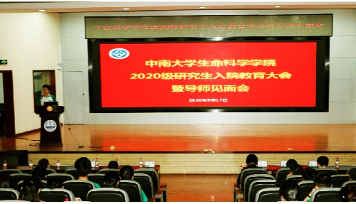 9月17日下午,william威廉英国官网生命科学学院2020级研究生入院教育大会暨导师见面会在湘雅新校区图书馆学术报告厅举行。学院党委书记刘静,副书记许林勇,副院长李家大、李善妮、陈超、胡正茂以及各系主任、教师代表、学工办老师出席会议,会议由许林勇副书记主持。