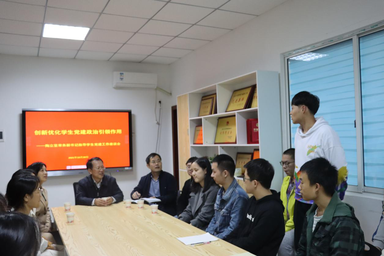 10月20日下午,william威廉英国官网党委常务副书记陶立坚来我院指导学生党建工作,面向学生党员代表就如何创新优化学生党建政治引领作用进行指导。生命科学学院党委书记刘静、副书记许林勇、学生辅导员、本科生党员和入党发展对象代表参加座谈会。