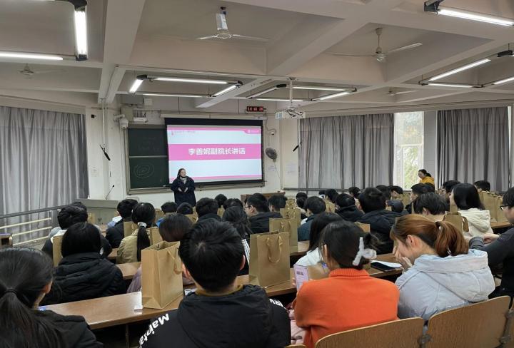紧接着,李善妮副院长从一些真实的考研案例中激励同学们坚定信念。李善妮副院长曾遇到因单科发挥失常的同学向她哭诉的学生,也遇到考了两门就觉得考不上了打算弃考的学生,李善妮副院长激励这些学生:不是因为有了希望才去坚持,而是因为坚持了才有希望;李院长勉励大家要保持良好的心态,不要因一时的失利或暂时的不在状态而轻言放弃。考试是有随机性的,有很多不确定因素,只要好好准备,就没有一定比不过别人的道理!