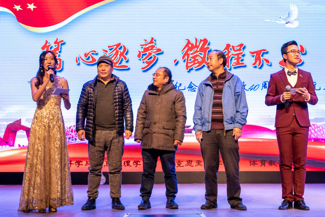 在一动一静的开场节目过后,三院院长互赠礼物,代表着地信院的古老地球仪,代表着马院的马列经典著作,代表着体育教研部的男篮签名的篮球……无一不诉说着各院最真挚的祝福。赠礼过后,三位院长情真意切地致辞,为整个元旦晚会拉开了序幕。