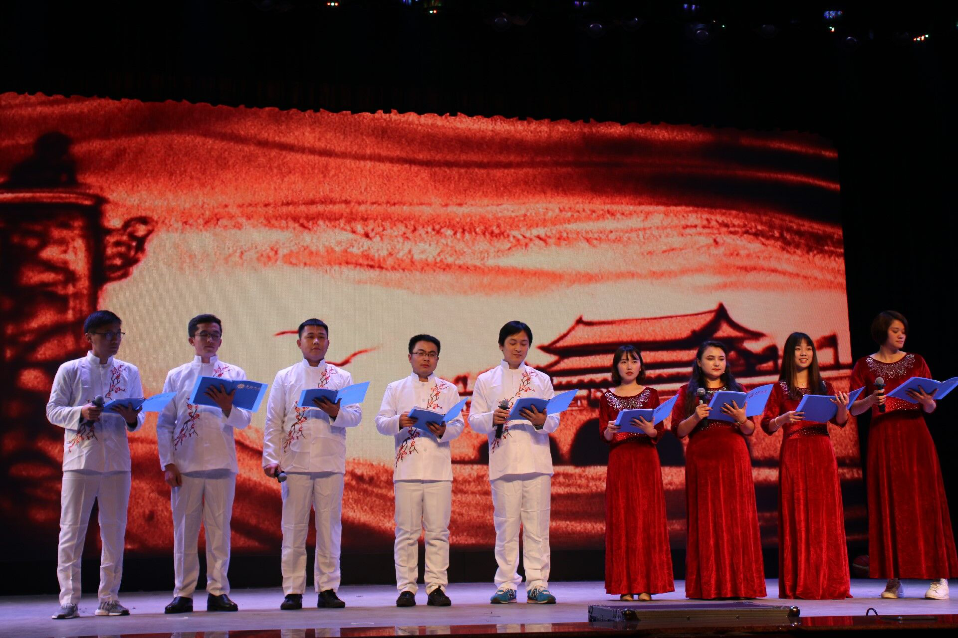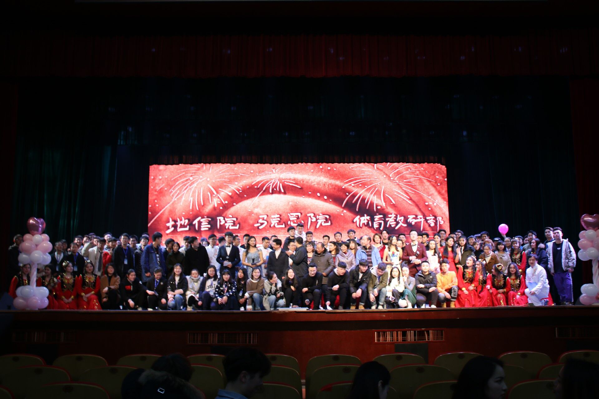 在长达两个多小时的表演中,工作人员们认真负责,维持晚会秩序,现场座无虚席,观众热情满满。晚上九点许,晚会在同学们意犹未尽地喝彩中完美落幕。本次元旦晚会的顺利开展,不仅丰富了校园文化生活、活跃了同学们的思维,更为同学们提供了一个展示自我的舞台,增进了三院的交流与合作。在所有领导嘉宾、表演人员和工作人员的合照后,本次元旦晚会圆满结束。