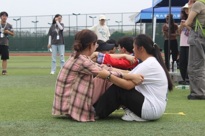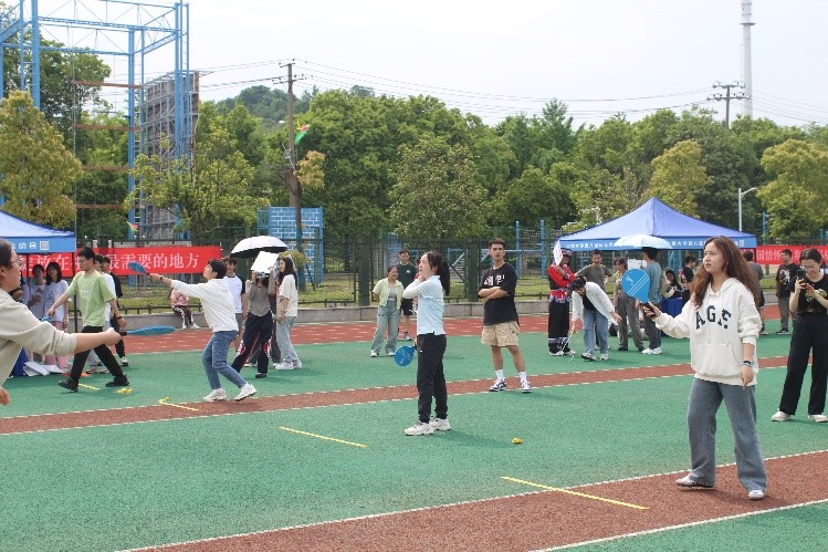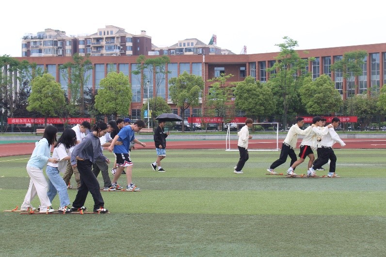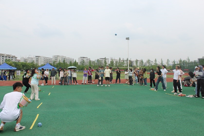 外国语学院党委副书记孙胜、学工办主任蒋知老师、党委学生工作部民族学生事务办公室主任帕提玛·柯孜尔亚老师、副主任哈纳提·吐尔森哈力老师,以及外国语学院辅导员老师们和少数民族专职辅导员老师们出席了本次活动。来自全校各学院的150余名各族师生组成的30支队伍共同角逐,其中部分队伍由老师和学生共同组成。彩旗与呐喊声一同飘荡,心和起点紧紧相连。倍受期待的民族团结运动会设有七个具有民族特色的体育竞技项目:背篓绣球、投壶、滚铁环、袋鼠跳、鸡毛毽、板鞋竞速和跷旱船。