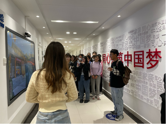 会议伊始,大家在古丽老师的带领下,参观了民族团结文化墙、民族团结进步之家等民族团结进步教育实体资源。同学们在老师的带领下参观了民族文字书法作品、民族特色饰件、民族建筑物模型等充满各民族文化的内容,并体验了民族服饰模拟。随后同学们移步民族团结进步之家,参观室内摆设的乐器和特色物件,同学们体验了民族乐器,一名同学则向大家演示了他们的民族乐器。同学们为美妙的乐声发出了阵阵掌声。
