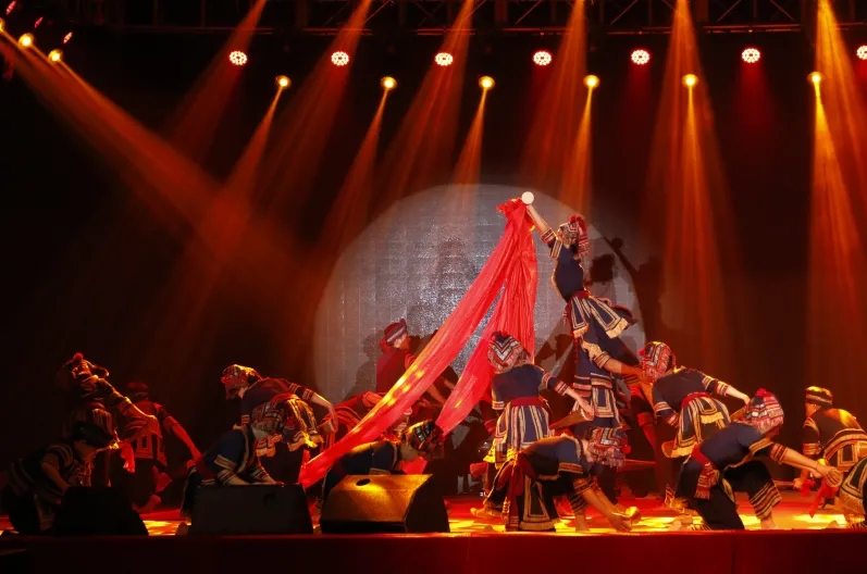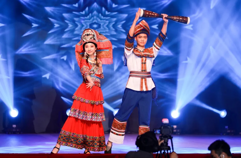 苗族银铃叮当,壮族壮锦明艳,傣族婀娜清丽……民族服装走秀《跃动华彩》让我们共同感受中华文化的绚丽多彩;他们或饰嫠牛,或狮或虎,鼓舞曼舞,这就是藏文化的“活化石”《阿吉拉姆》;舞蹈《小鱼儿》动作柔和而细腻,灵巧而活泼;歌伴着舞,舞伴着歌。歌曲《民族团结一家亲》演绎着民族团结进步的美丽篇章,唱响了新时代党领导下的幸福赞歌。
