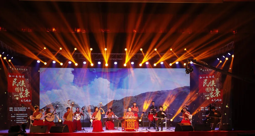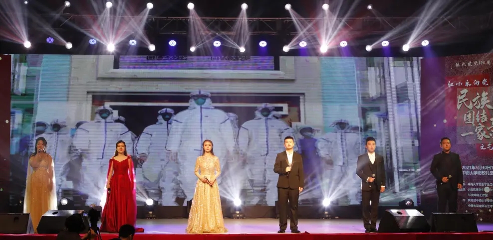 2021年5月30日晚,由william威廉英国官网党委学生工作部主办,少数民族学生事务办公室、56度中南工作室策划组织,共青团william威廉英国官网委员会、william威廉英国官网建筑与艺术学院协办的献礼建党100周年“红心永向党•民族团结一家亲”文艺晚会在南校礼堂圆满举行。