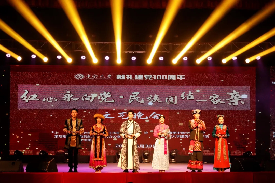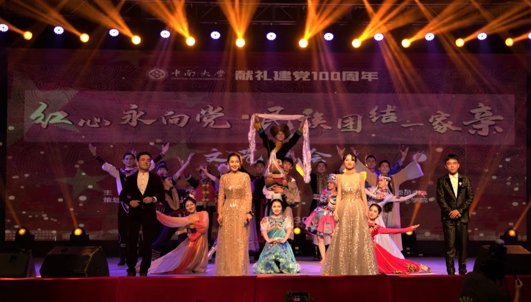 晚会在《没有共产党就没有新中国》乐曲声中落下帷幕。百年风华正当时,乘风破浪再远航;千秋伟业同心铸,万众一心绘蓝图。中南各族师生将在习近平新时代中国特色社会主义思想指引下心手相牵,不断铸牢中华民族共同体意识,画好同心圆走好同心路,共同谱写实现第二个百年梦想的新时代华丽篇章!