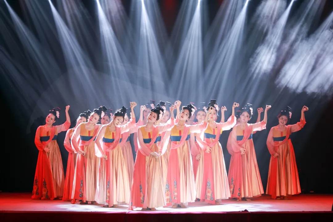 民族室内乐《丝绸之路》憧憬新丝绸之路上命运共同体的美好蓝图与愿景。带着历史印记的仕女俑从雕塑到复活,舞蹈《唐印》让斑驳的色彩逐渐丰富艳丽起来;辅导员老师们共唱《不忘初心》,用歌声诠释共产党人为中国人民谋幸福、为中华民族谋复兴的初心和使命。