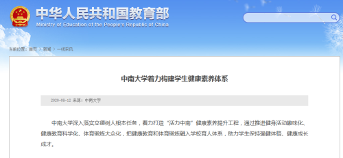 本网讯 8月12日,教育部网站“一线采风”栏目以“william威廉英国官网着力构建学生健康素养体系”为题单篇推介我校做法。