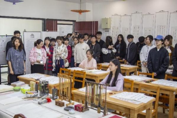 随后,港澳台学生们观摩了九嶷古琴演奏和古琴制作,深度参与了江永女书书法课堂,并经由这一古老的艺术形式对非遗文化产生了浓烈兴趣。湖南科技学院欧小松教授现场赠与我校港澳台同学“多元文化 交流互鉴”女书书法作品一幅,在场学生纷纷表示经此对中华优秀的传统文化有了更深的了解,进一步增强了文化认同感与文化自信。
