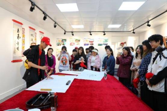 15日下午,师生一行来到阳明山“和”字展览馆参观。2006年至今,永州阳明山举办了十届以“和美阳明山·两岸一家亲”为主题的中国阳明山“和”文化节,加强了两岸人员的深度互访。在和字馆,港澳台学生们认真欣赏“和”文化节相关主题书法作品,感受“和”字书法作品中传递出的两岸深厚情谊,并纷纷提笔书写“和”字,寄托对和谐、和平、和美、和善、和睦的美好祈愿。