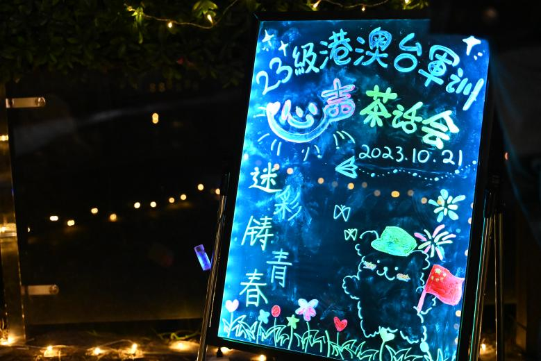 在主持人林丽缇的组织及工作人员的配合下,2023级港澳台新生陆续进场,在签到处领取便签纸,以视频形式记录自己的军训真实感受。