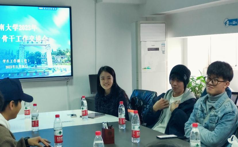 随后,进入经验分享的环节。外国语学院团委学生会新闻部副部长赖昭君分享自己在团学会工作中的收获以及心态上的转变;紧接着,湘雅药学院办公室港澳台事务干事陈开玉向大家讲述了自己在学院如何为港澳台同学们服务,切实提高港澳台学生活动参与度;最后,港澳台助理团队现任负责人何钊民向大家详细讲述了港澳台助理团队协助开展港澳台工作的相关情况以及遇到的问题,他希望各港澳台骨干可以畅所欲言、积极探讨,共同将港澳台工作做得更好。