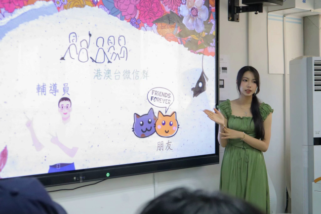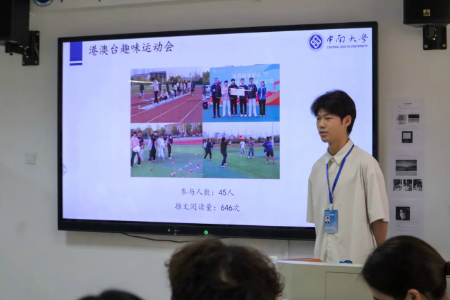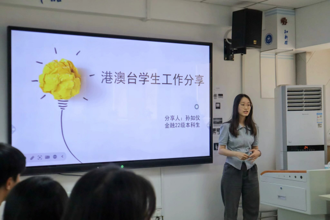 商学院2022级的孙如仪同学强调在工作中保持认真态度和积极心态的重要性,分享了自己在学院参与港澳台学生工作的经历和感悟。湘雅护理学院2023级的屈珈颖同学则是从自身角度出发,分享自己大一学年在学习、生活以及人际交往方面上完成了自我成长的蜕变历程,并对未来港澳台活动的开展方向提供了创意设想。