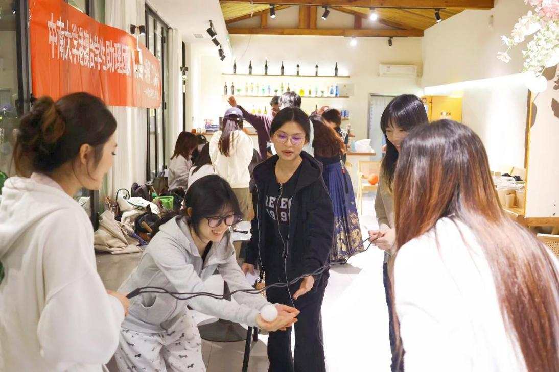 活动的核心环节——研学互动闯关环节点燃了全场热情。七组队员围绕学科知识、学术术语、学术场景等主题展开比拼:“知识速记夹豆”中,队员们一边专注夹豆,一边快速应答学科基础题;“学术术语默契传递”里,伙伴间的精准描述与高效配合尽显研学默契;“学术著作有序排序”环节,大家凭借扎实的学识积累完成排序挑战……指导老师们也积极参与其中,与同学们一同答题、共同闯关,现场笑语与思考交织,师生情谊在学术互动中愈发深厚,团队凝聚力在协作解题中持续提升。