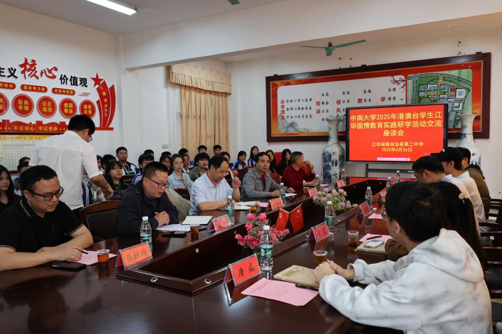 最后,研学团一行来到江华二中。在这里,港澳台学生与辅学义工参观了中共江华县第一支部旧址,了解江华县早期党组织的发展历程和革命斗争历史,并与当地学生展开深入交流,分享自身学习生活经历,增进彼此情谊。
