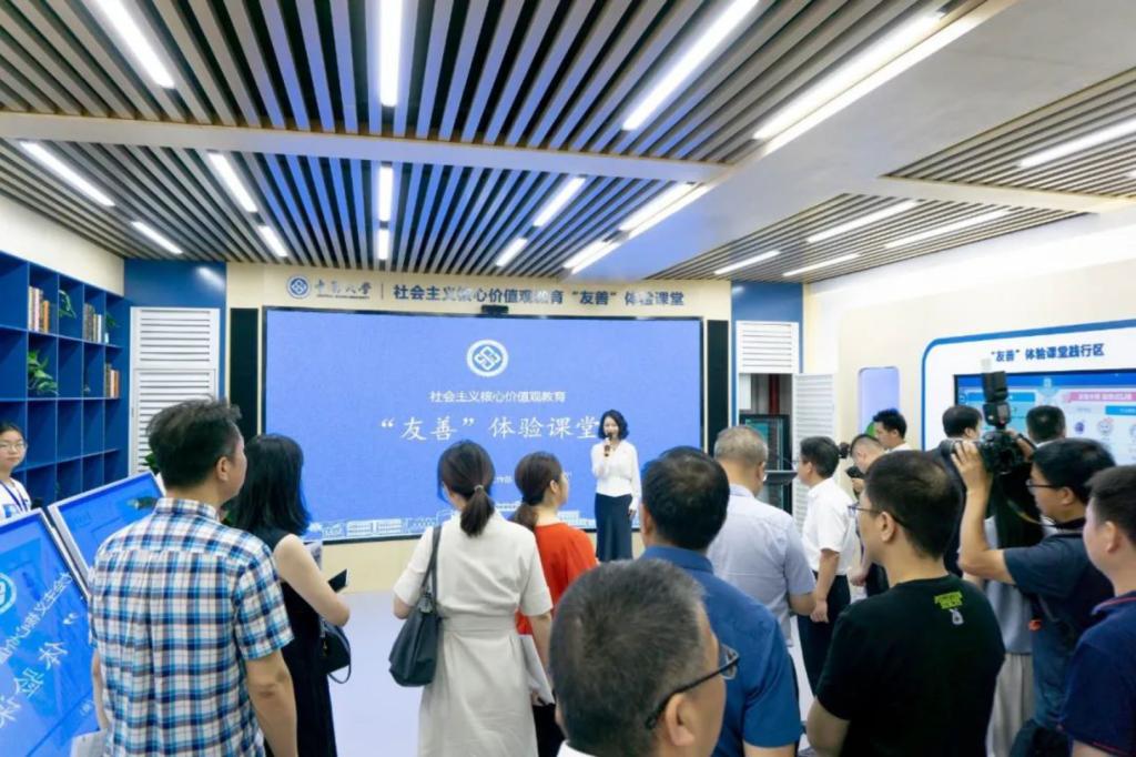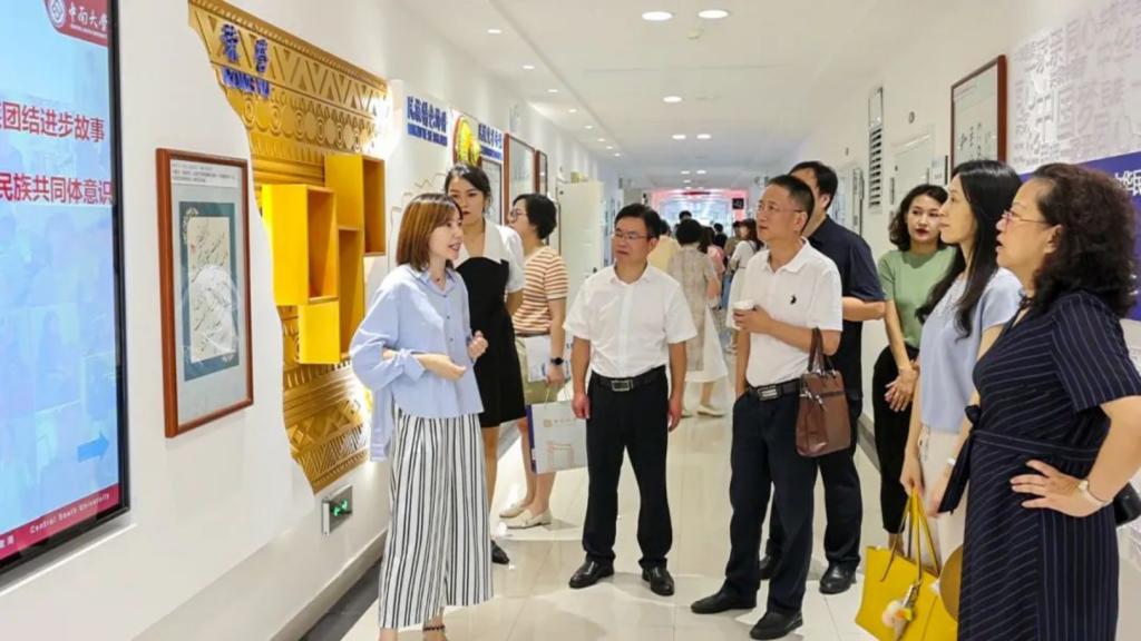 在物理空间建设和氛围营造方面,比如,党史学习教育体验课堂的大党徽让路过的学生不自觉停步瞩目,民族团结进步教育体验课堂的民族文化墙展示了部分民族服饰、文字等特色物品,近100台“书香中南”共享图书机、“活力中南”共享器材站等遍布校园等。